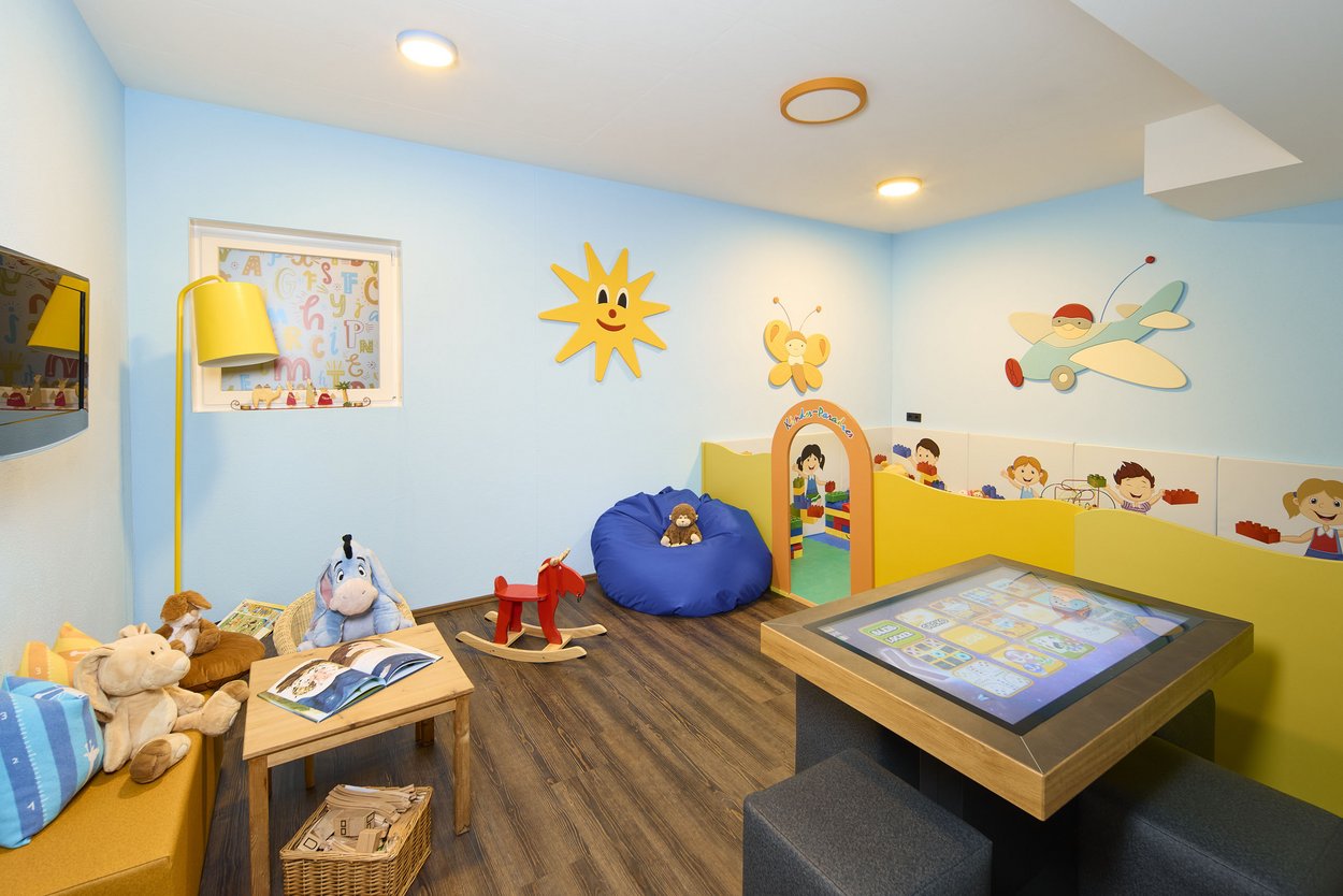 - Spiel und Spaß: Spielplatz mit Schaukeln und Sandkasten, Kinderspielraum innen
