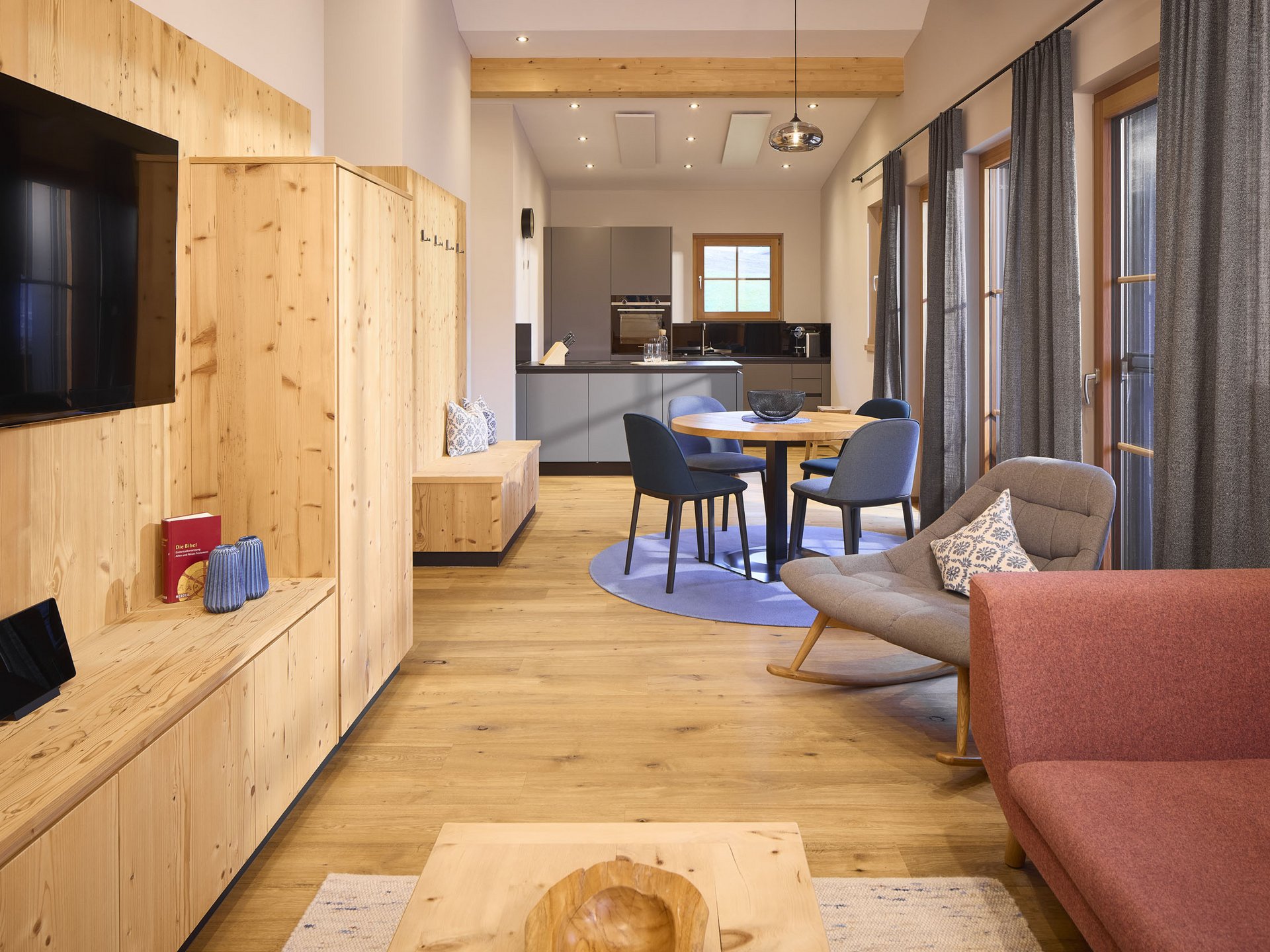 Wir bieten unseren Gästen neun liebevoll ausgestattete Appartements in Zell am Ziller mitten im Grünen. Umrahmt von der idyllischen Zillertaler Bergwelt finden in den Appartements bis zu sechs Personen Platz. Katarina, Magdalena, Josef, Martha – die Namen der Appartements in unserer Unterkunft in Zell am Ziller haben wir mit Bedacht gewählt. Denn wir sind Familienmenschen, und so einzigartig wie unsere Appartements sind auch unsere Lieblingsmenschen, nach denen sie benannt sind. Unterschiedlich in der Größe bezaubern alle neun Unterkünfte mit ihrer einzigartigen Wohlfühlatmosphäre. Lass dich fallen im gemütlichen Schlafzimmer, nimm Platz auf dem Balkon oder der Terrasse und genieße den wundervollen Ausblick auf die Zillertaler Bergwelt und auf die Hochfeldhofer Tierwelt. In der separaten Küche oder in der Wohnküche kochst du gemeinsam mit deinen Liebsten, und nach dem gemeinsamen Essen lasst ihr den Tag bei einem Spiel- oder Fernsehabend in den gemütlichen Wohnräumen ausklingen.
