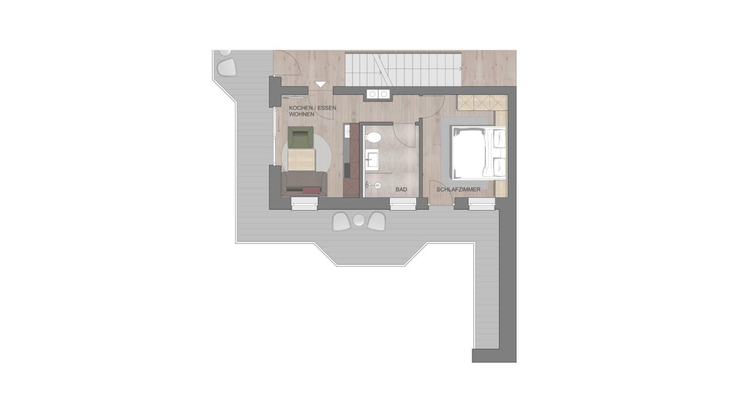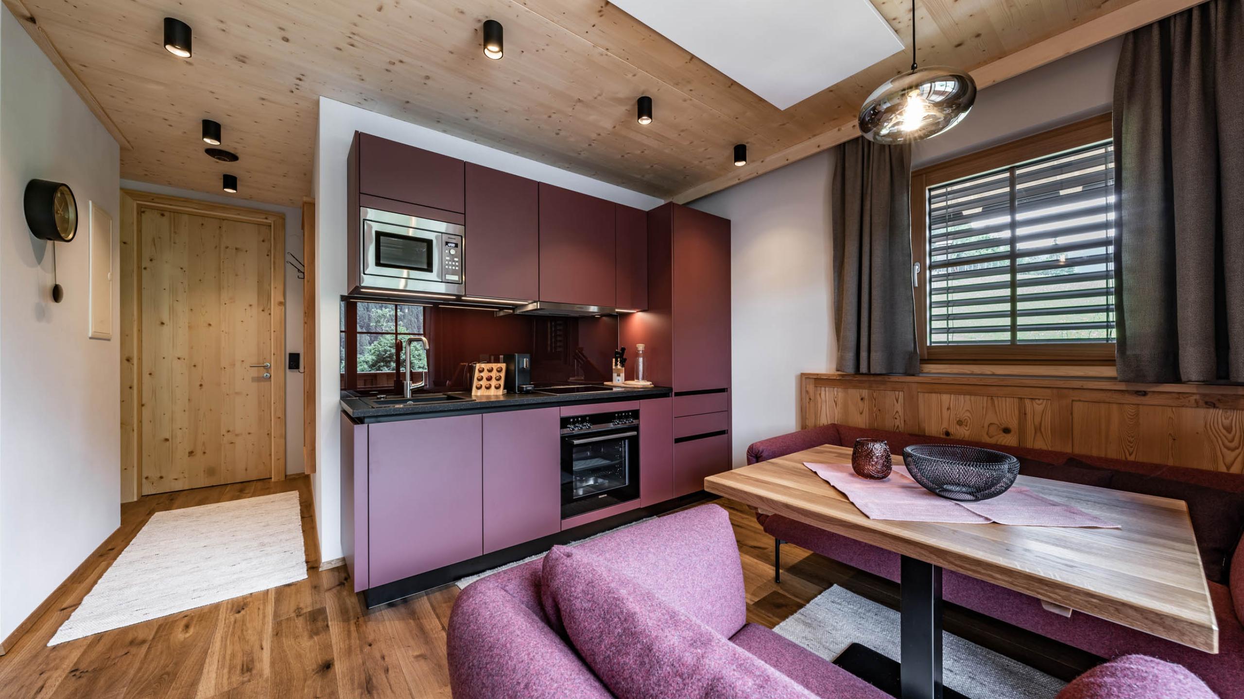 Wohlfühlen vom ersten Moment an in deiner gemütlichen Unterkunft mit Balkon: Das Appartement Elisabeth ist mit seinen 35 m² ideal für eine Auszeit zu zweit. Die moderne Wohnung ist liebevoll mit Möbeln aus heimischem Holz eingerichtet und befindet sich im Obergeschoß des Bauernhauses. Es verfügt über eine voll ausgestattete Wohnküche, ein großzügiges Badezimmer sowie ein gemütliches Schlafzimmer mit Doppelbett.