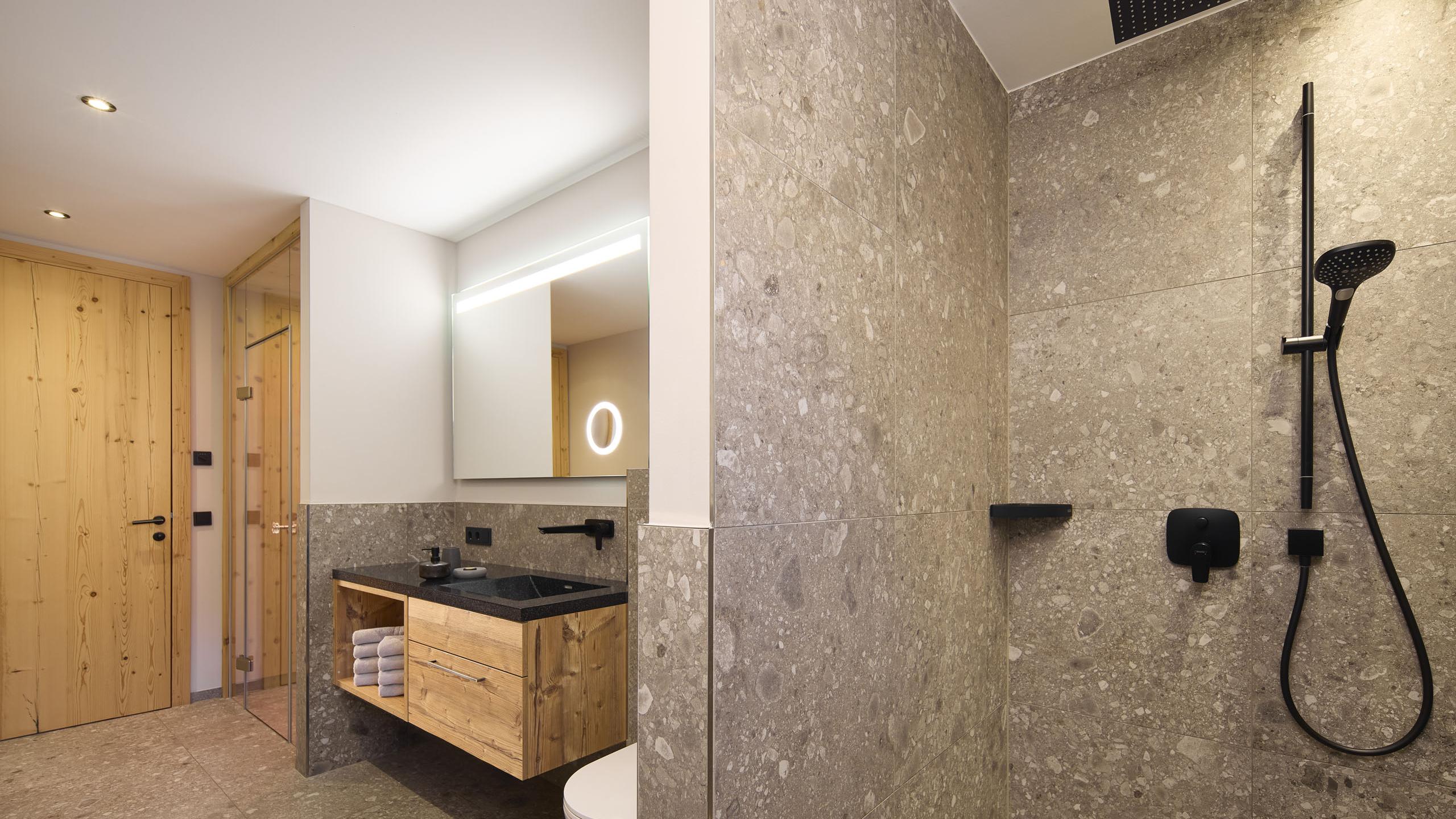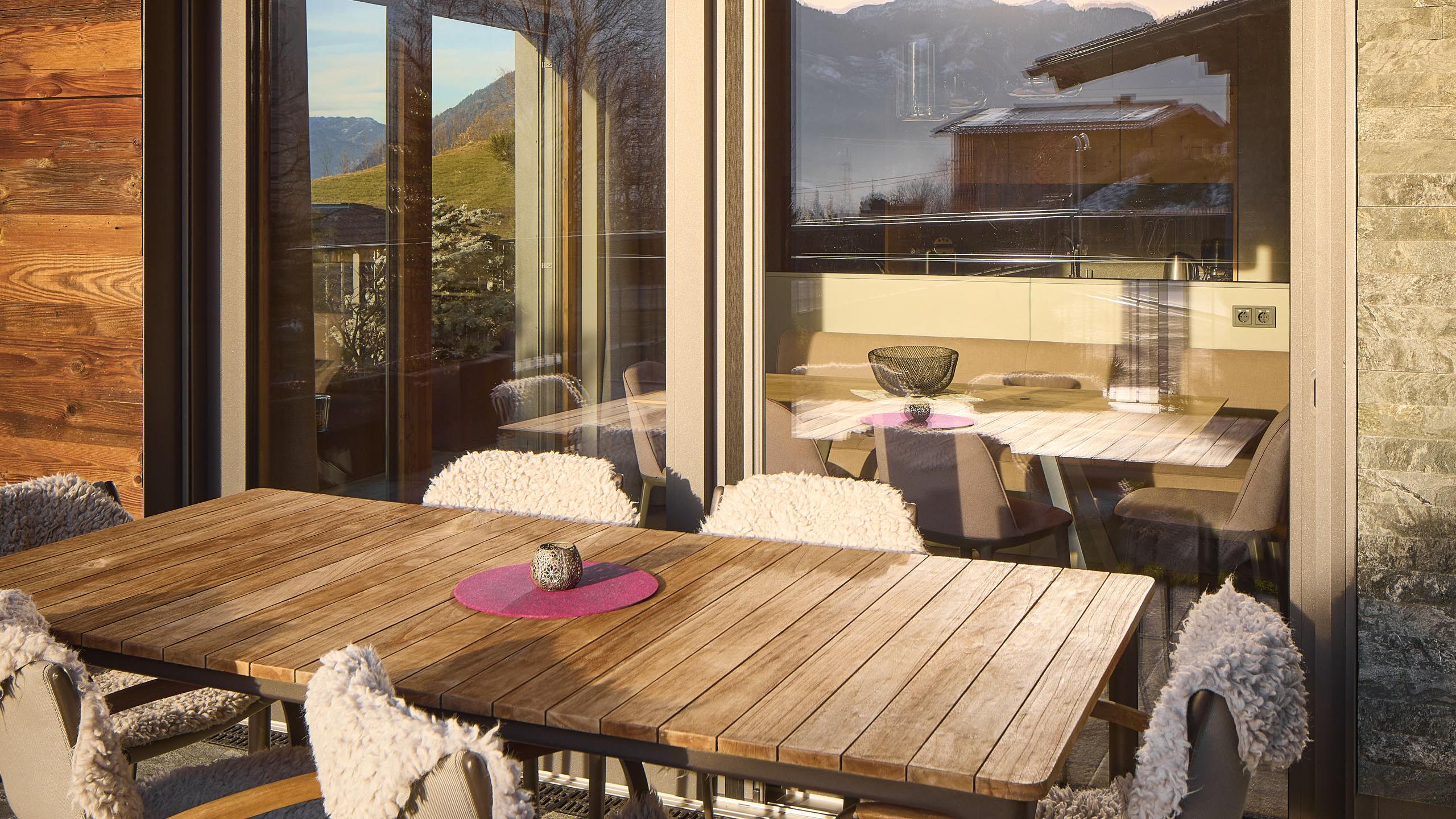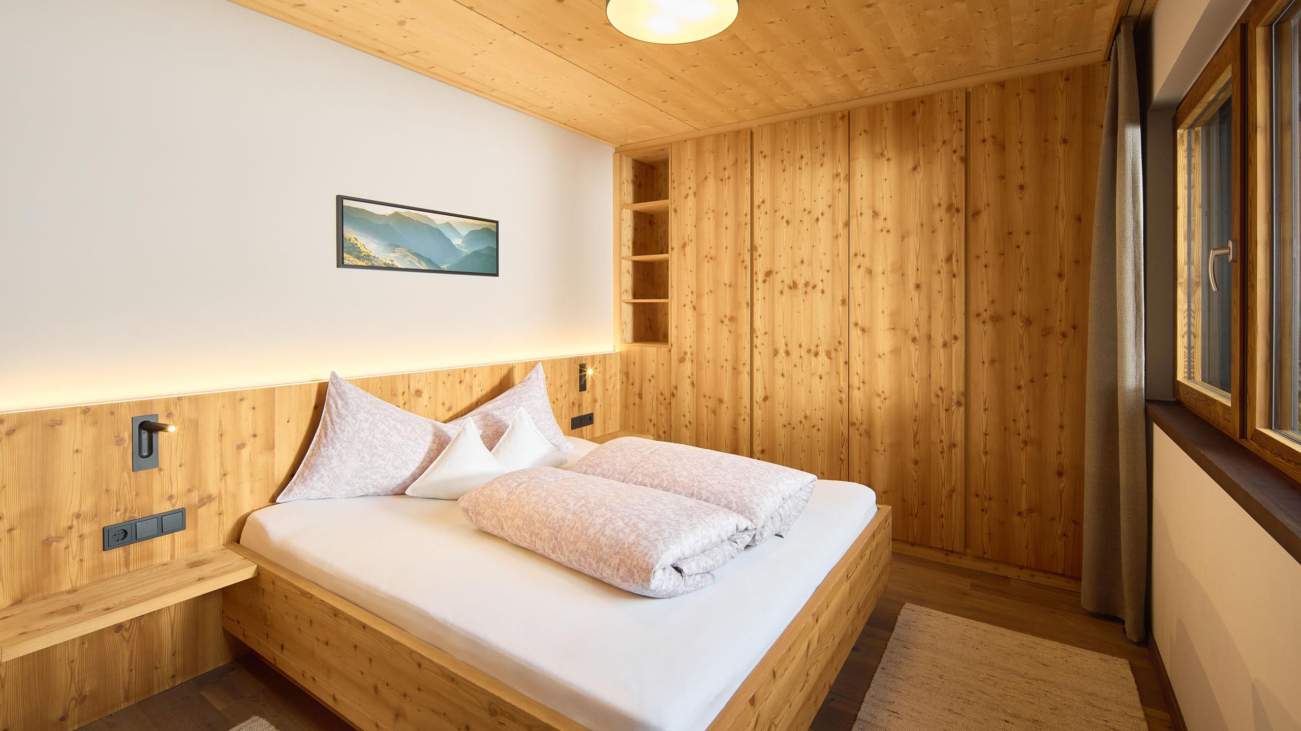 Dürfen wir vorstellen: unser Appartement Mara I. In perfekter Sonnenlage ist hier 2021 ein barrierefreies Appartement im Chalet entstanden, auf das wir besonders stolz sind. Die mit modernem Interieur ausgestatteten Wohnungen bietet Platz für bis zu sechs Personen und verfügt über drei Schlafzimmer, eine moderne Küche, einen lichtdurchfluteten Wohnbereich, zwei Bäder mit Dusche und eine großzügigen Panoramaterrasse. Wohlfühlatmosphäre garantiert!