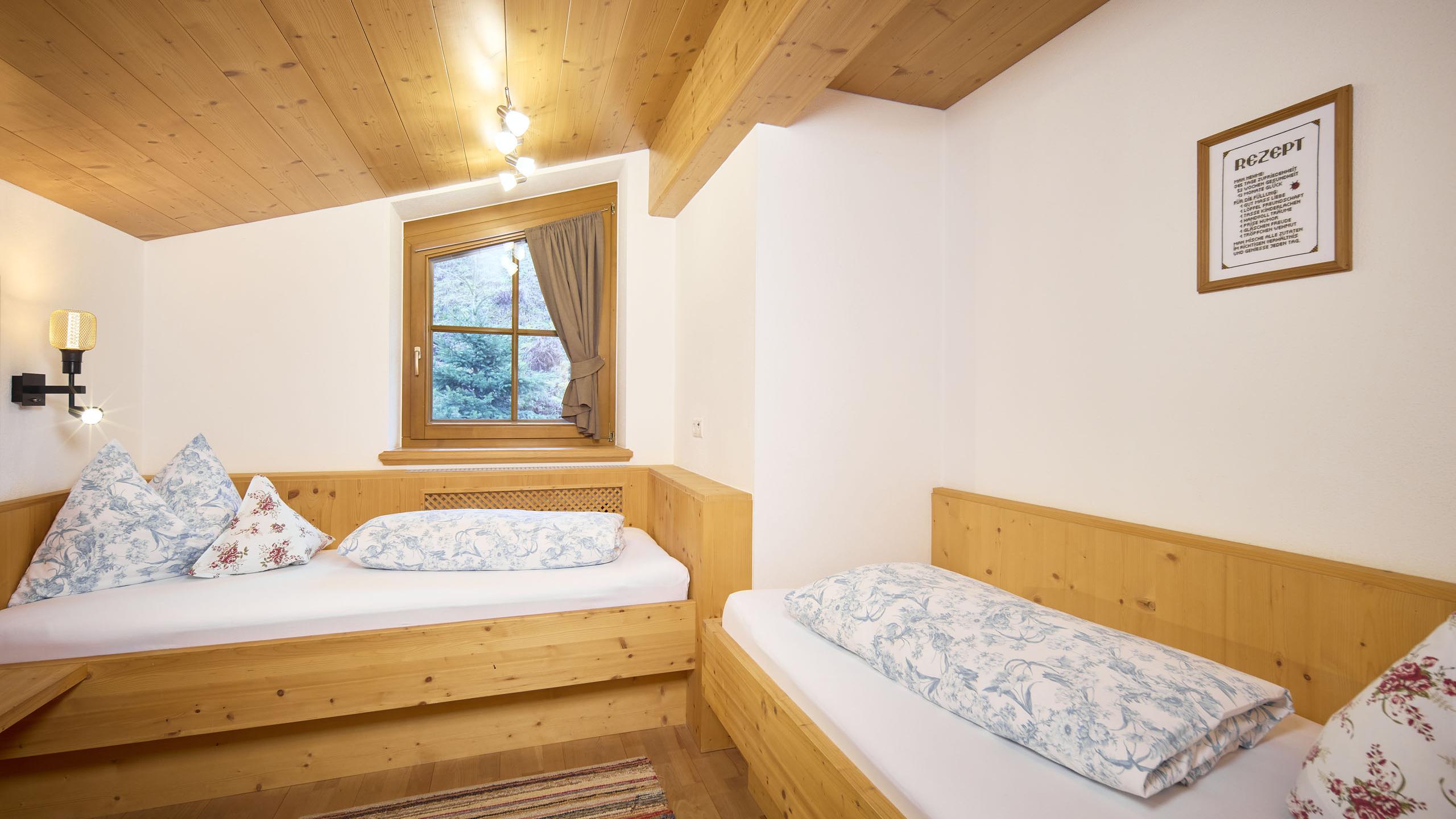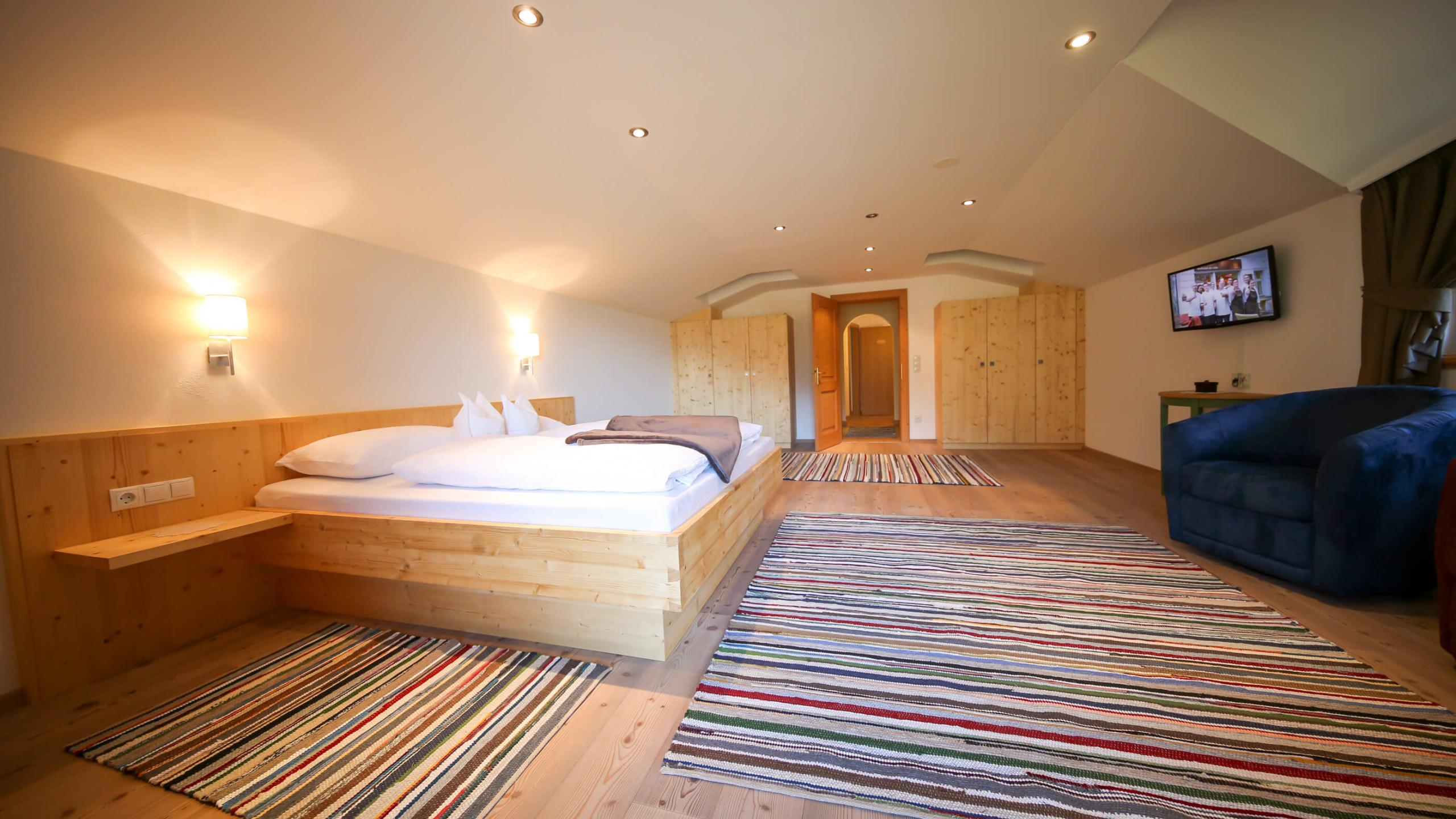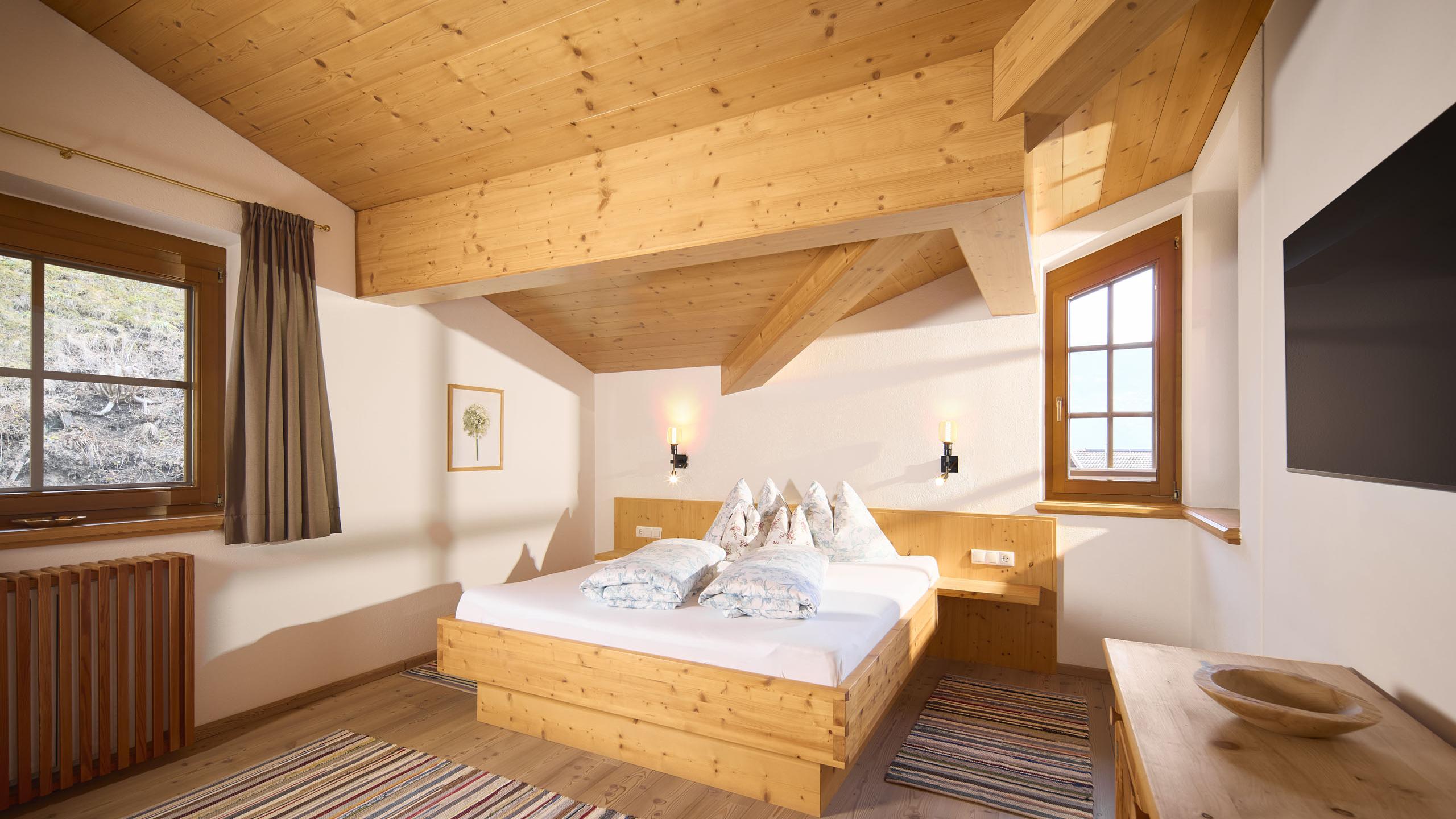 Unser Appartement Marianne ist mit seinen 130 m² perfekt für deinen Familienurlaub mit bis zu sechs Personen. Die Dachgeschosswohnung ist liebevoll und modern mit Möbeln aus heimischem Holz eingerichtet und befindet sich im Nebengebäude, das nur wenige Schritte vom Haupthaus entfernt ist. Erholung finden du und deine Lieben in zwei Schlafzimmern mit Doppelbett sowie einem Zimmer mit zwei getrennten Betten. Zudem verfügt das großzügige Appartement über ein Badezimmer mit WC, ein zusätzliches separates WC, eine moderne Küche mit Esstisch und ein gemütliches Wohnzimmer mit Couch. Auf der Panoramaterrasse genießt du den traumhaften Ausblick auf die Zillertaler Bergwelt.