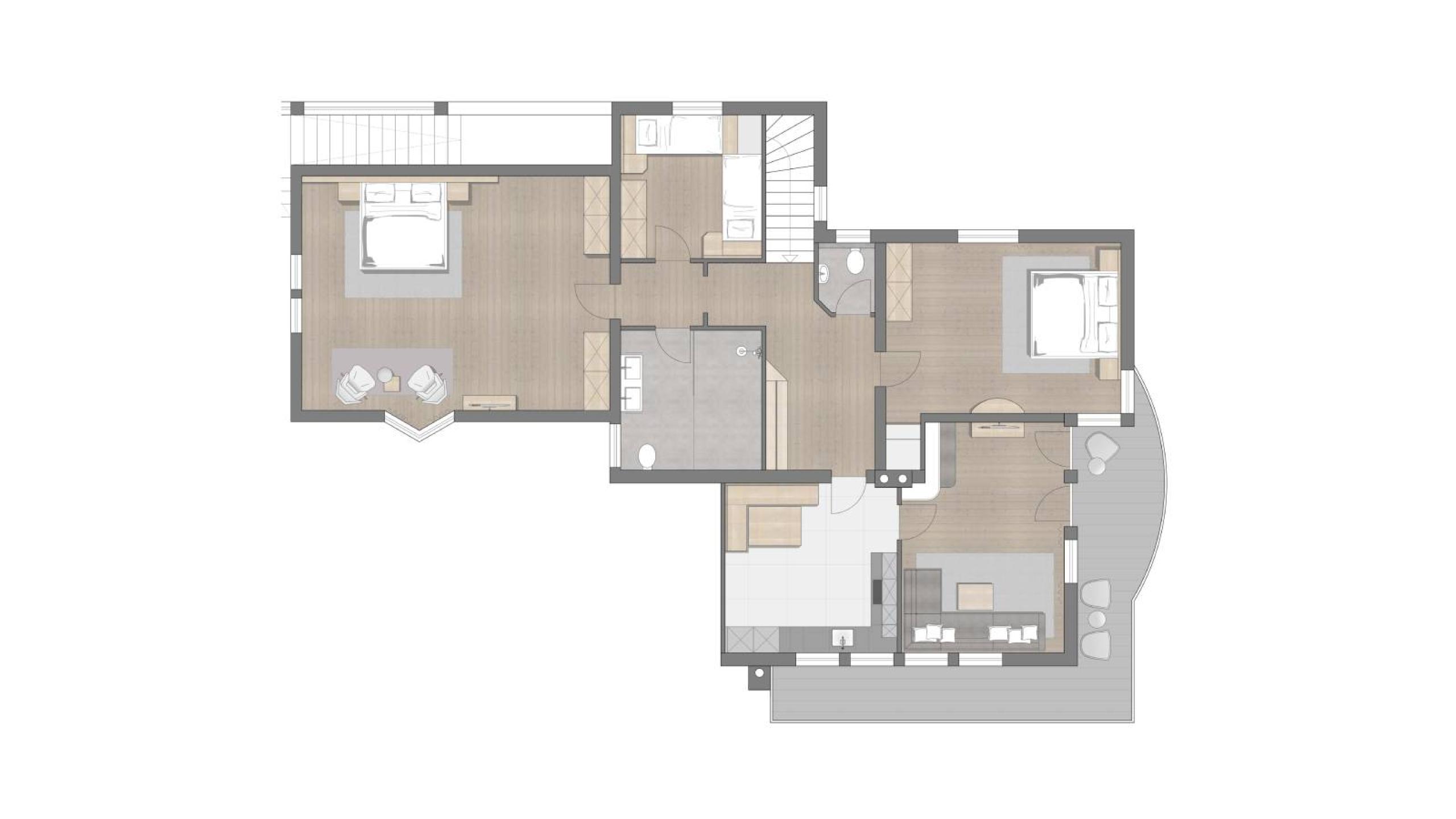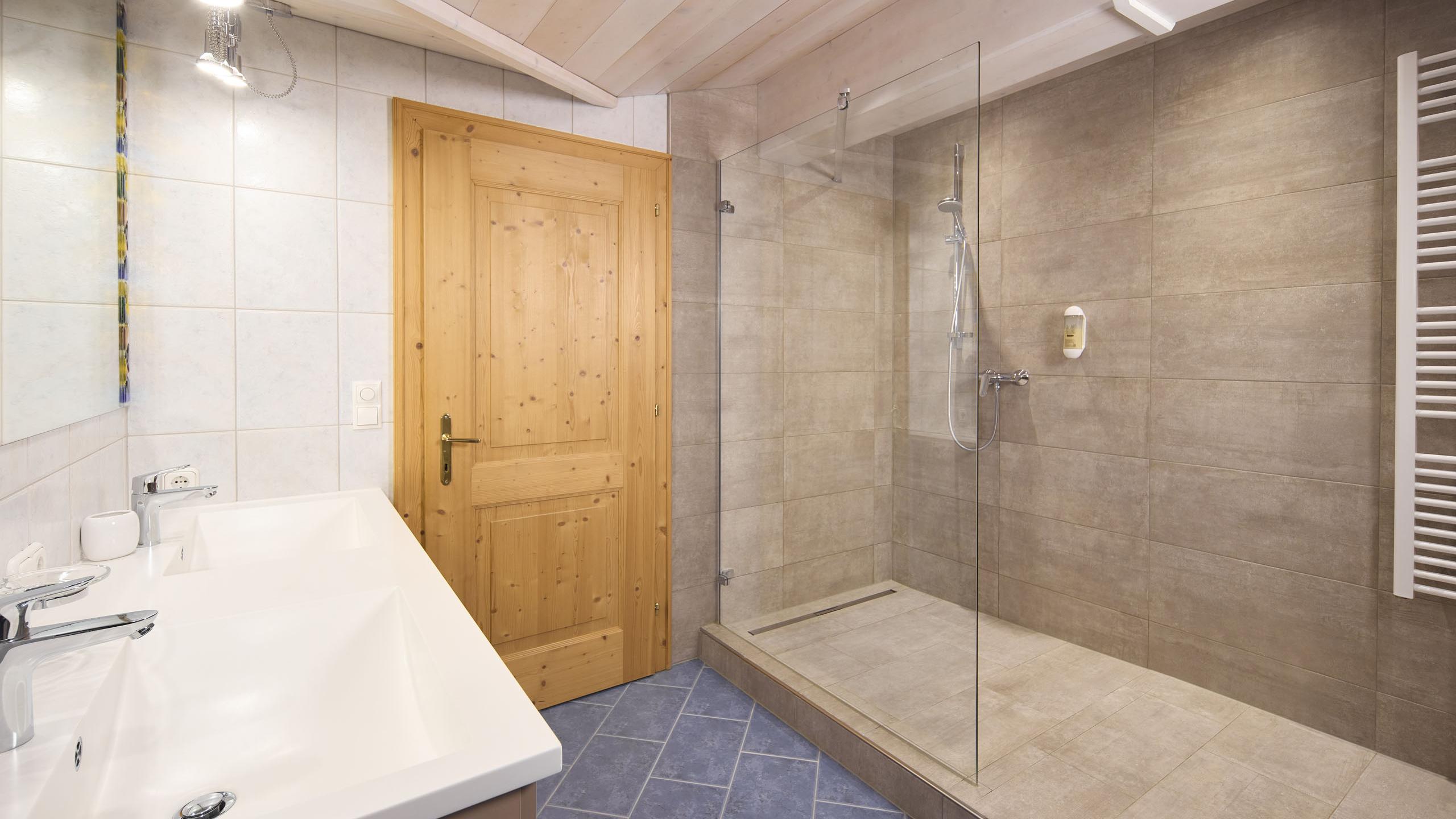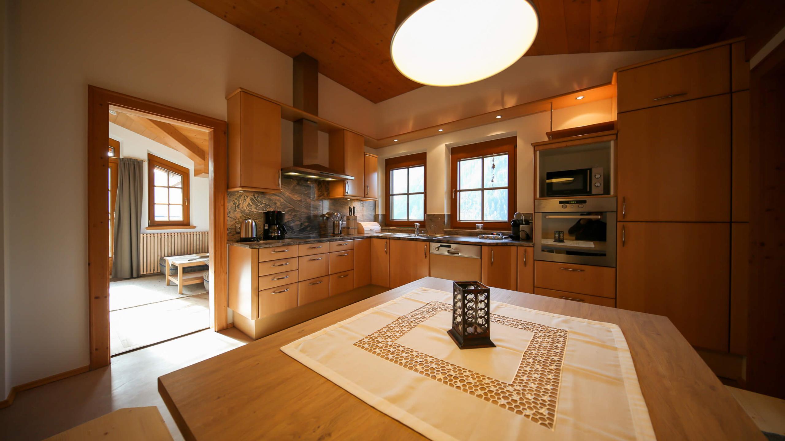 Unser Appartement Marianne ist mit seinen 130 m² perfekt für deinen Familienurlaub mit bis zu sechs Personen. Die Dachgeschosswohnung ist liebevoll und modern mit Möbeln aus heimischem Holz eingerichtet und befindet sich im Nebengebäude, das nur wenige Schritte vom Haupthaus entfernt ist. Erholung finden du und deine Lieben in zwei Schlafzimmern mit Doppelbett sowie einem Zimmer mit zwei getrennten Betten. Zudem verfügt das großzügige Appartement über ein Badezimmer mit WC, ein zusätzliches separates WC, eine moderne Küche mit Esstisch und ein gemütliches Wohnzimmer mit Couch. Auf der Panoramaterrasse genießt du den traumhaften Ausblick auf die Zillertaler Bergwelt.