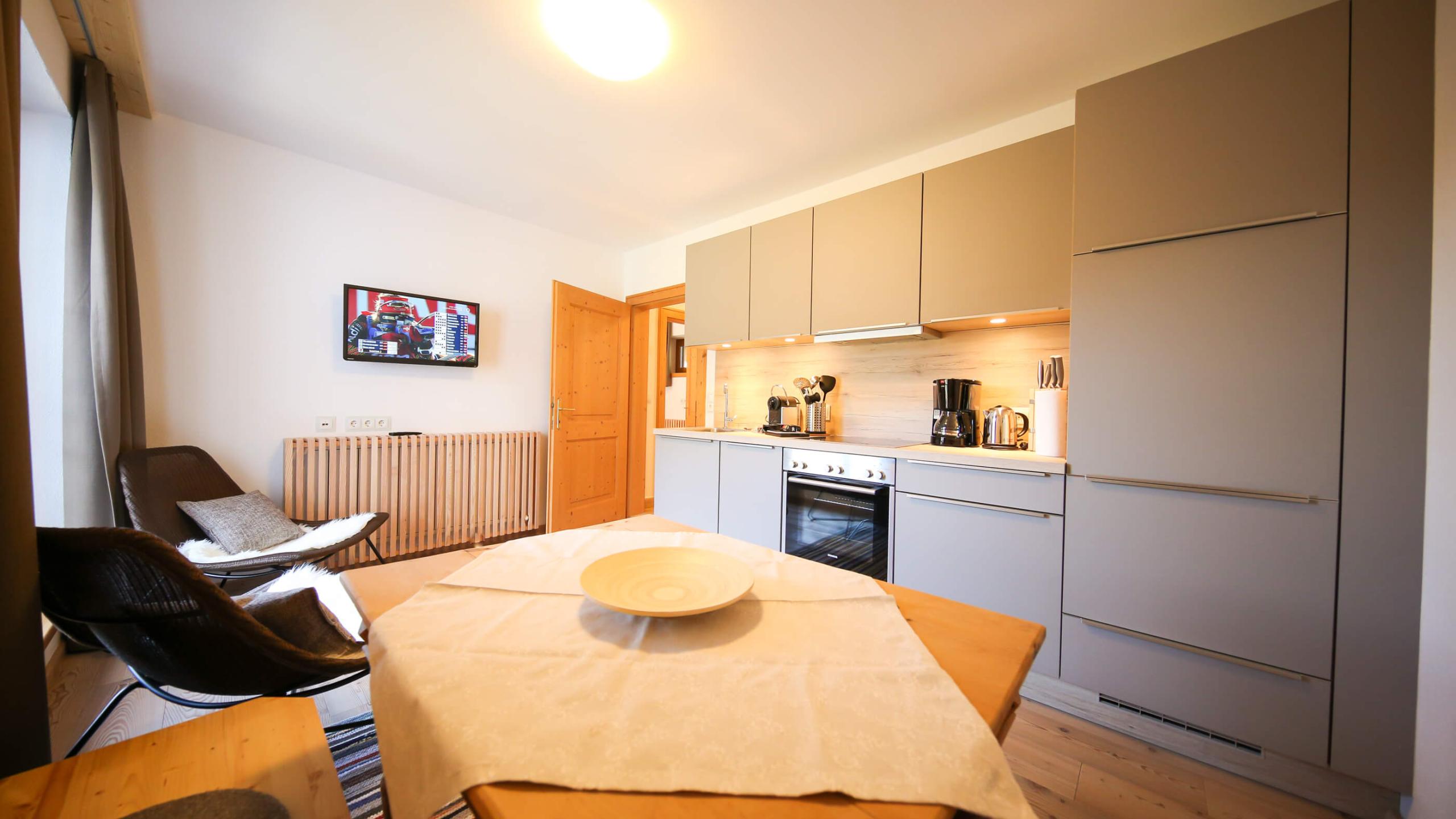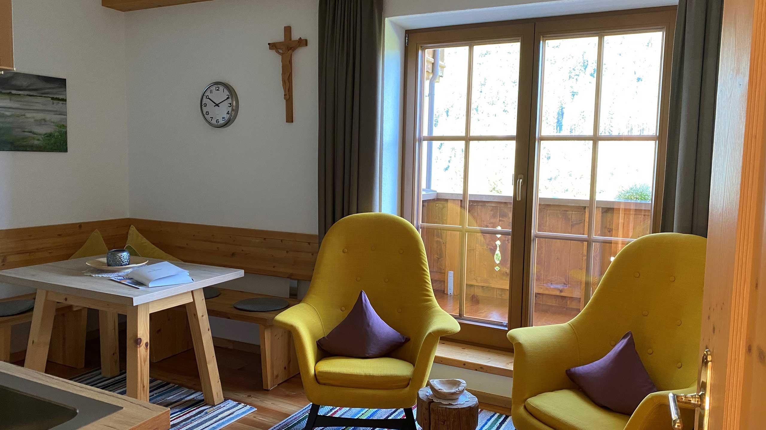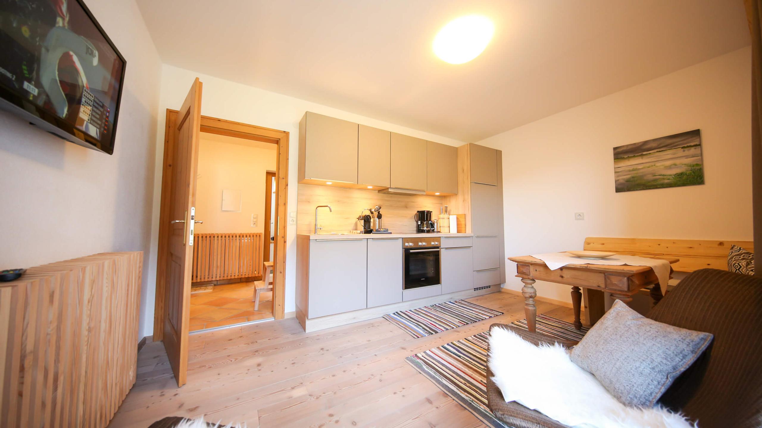 Genieße deine Auszeit in Zweisamkeit! Das Appartement Max ist mit seinen 40 m² für zwei Personen geeignet und liebevoll im modernen Stil und mit Möbeln aus heimischem Holz eingerichtet. Es befindet sich in einem Nebengebäude, das nur wenige Schritte vom Haupthaus entfernt ist. Das Appartement verfügt über eine voll ausgestattete Wohnküche, ein großzügiges Badezimmer, ein gemütliches Schlafzimmer mit Doppelbett sowie einen möblierten Balkon.