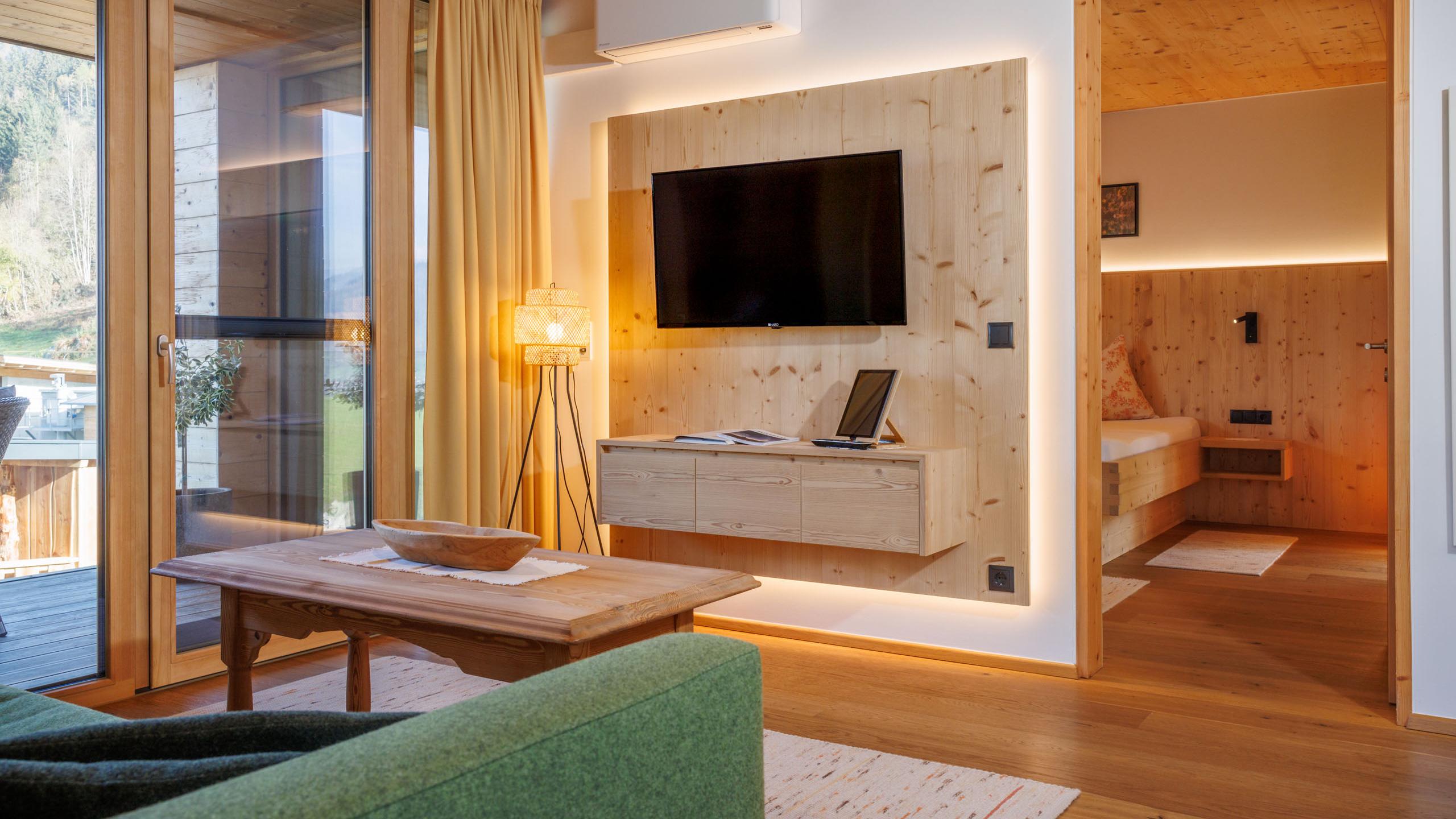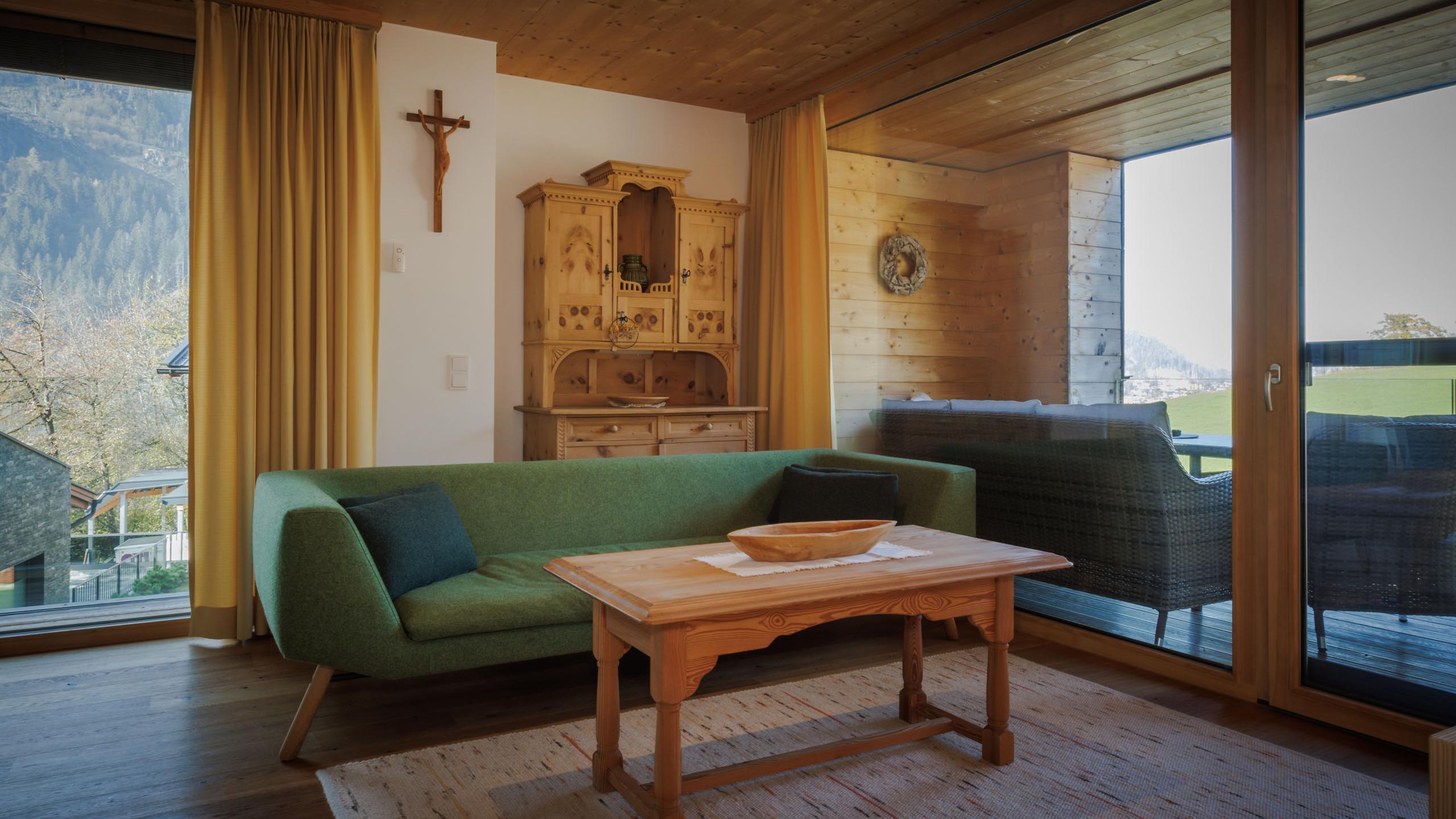 Perfekt für dich, perfekt für die ganze Familie: Unser Appartement Viktoria befindet sich im Neubau, der 2014 errichtet wurde, und bietet dir dank der raumhohen Fenster einen traumhaften Ausblick auf die umliegende Natur und die Berge. Das großzügige Urlaubszuhause bietet mit einer vollausgestatteten Küche, einem gemütlichen Wohnzimmer und zwei getrennten Schlafzimmern vier Personen ausreichend Platz für eine unbeschwerte Auszeit.  Außerdem verfügt das Appartement über ein modernes Bad mit separatem WC und zwei Panoramabalkone.