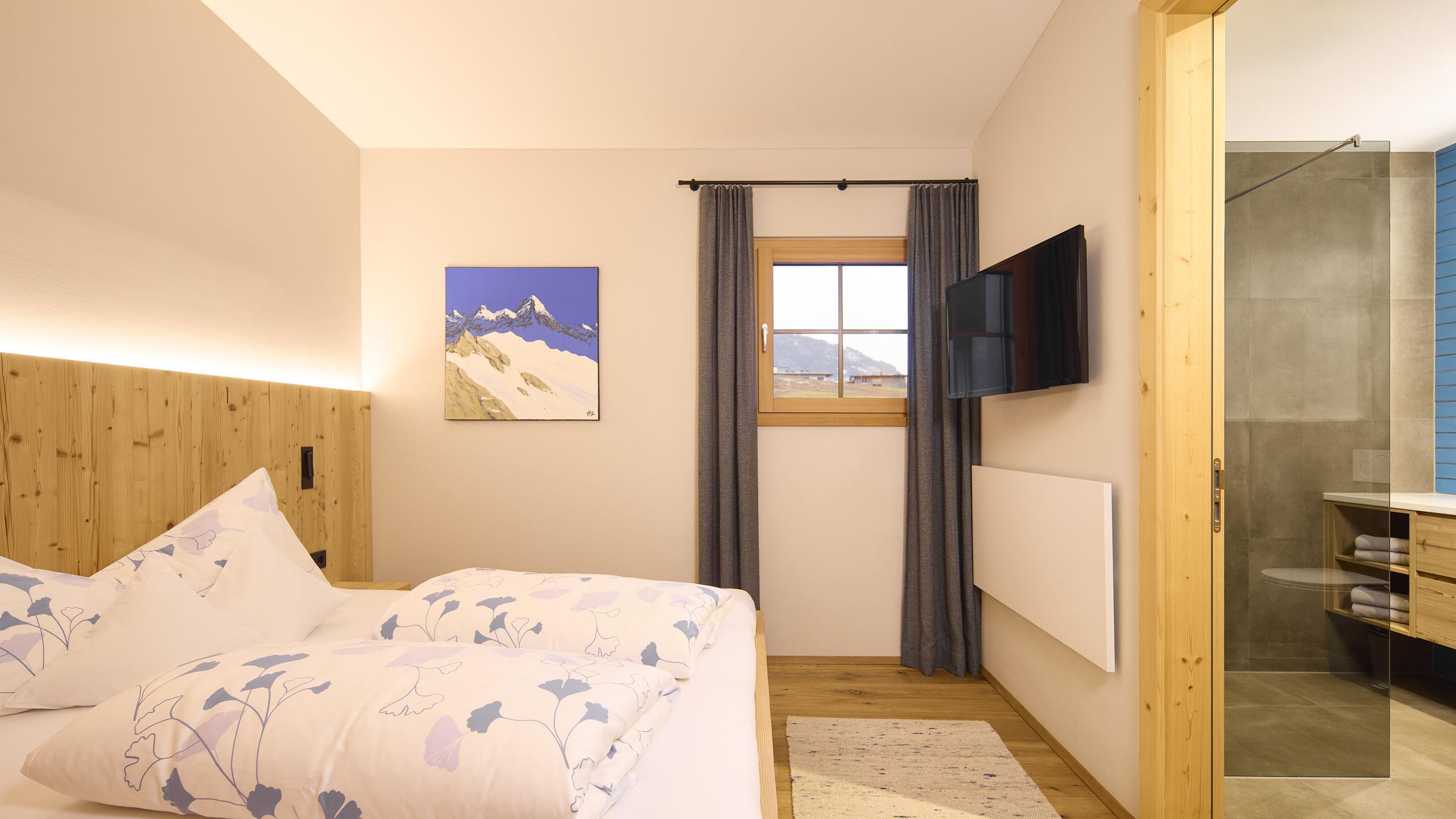 Our spacious Apartment Martha is a comfortable holiday home for up to four people. Families with small children especially appreciate this apartment, which is located on the upper floor that was renovated in 2021 and is lovingly furnished in cosy Tyrolean style. Thanks to a fully equipped kitchen, two modern bathrooms with shower and toilet, and a terrace with a view of the Zillertal mountains, you’re sure to have a carefree stay. If required, an additional foldaway bed can be provided.